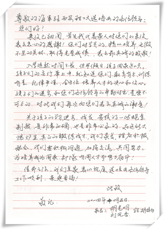 胡振旭家长来信
