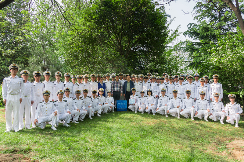 心系母校深情,身践海天壮志。是日,天朗气清,暖阳高照,毕业认植纪念树活动在葱郁的“海军林”中举行,2017届全体毕业国防生列队整齐,集合在纪念树前。