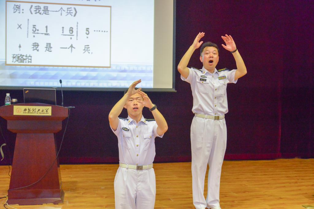 此次授课,杨教员从歌唱技巧、指挥姿势以及人生如歌三个方面入手,以幽默风趣的授课方式、气氛融洽的现场指导,为全体国防生带来了一场生动活泼的艺术盛宴。