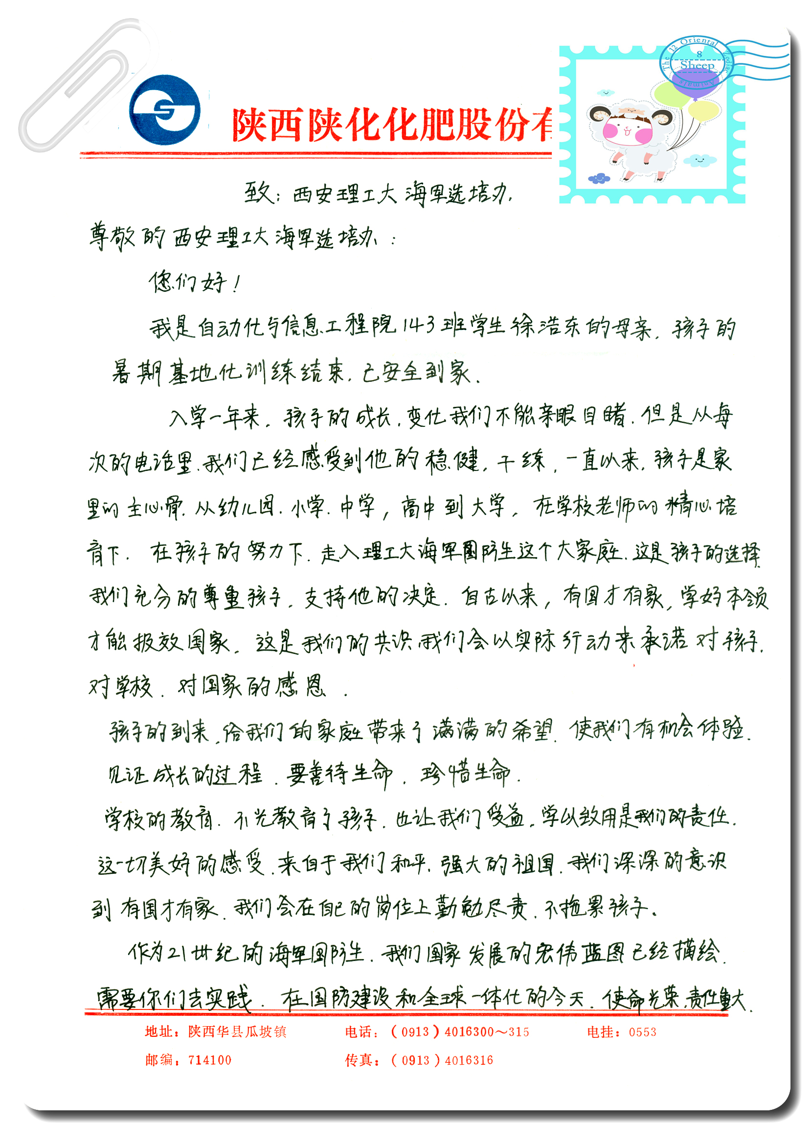 徐浩东家长来信