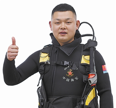 由于东海海域水质浑浊,伸手不见五指。为练就“浑水摸鱼”本领,他把握训练场的每一分钟,一有时间就请教钻研,潜水池里摸硬币练敏感度、码头摸钢管练方向感、水下电焊切割练精准度……