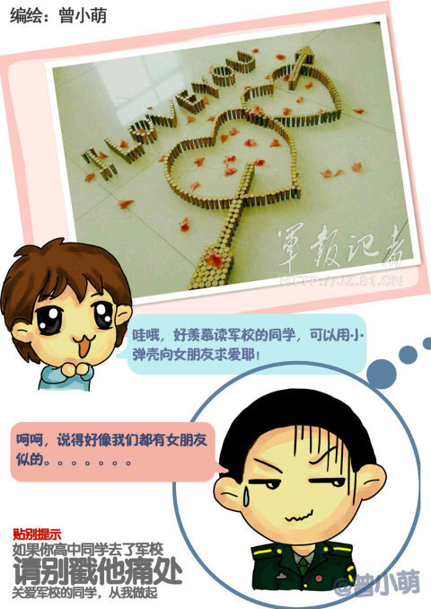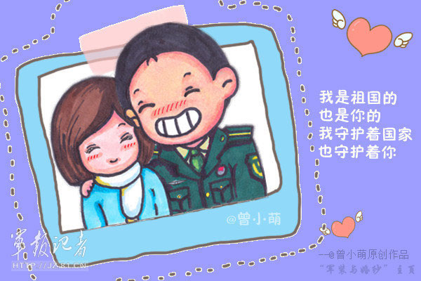 军人是人不是神,现实中的军人并不是我们想象中的那么伟大和崇高,他们和普通人一样,有血有肉,他们同样渴望温柔,同样需要关爱。兵小萌Q版原创漫画,可爱幽默的军人卡通形象,独特笔触描绘出军人的小爱情怀。(图片绘编:曾小萌)