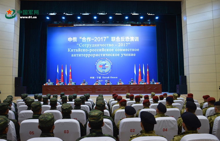 中国武警部队与俄罗斯国民卫队“合作-2017”联合反恐演训今天上午在宁夏银川近郊某训练基地启动。