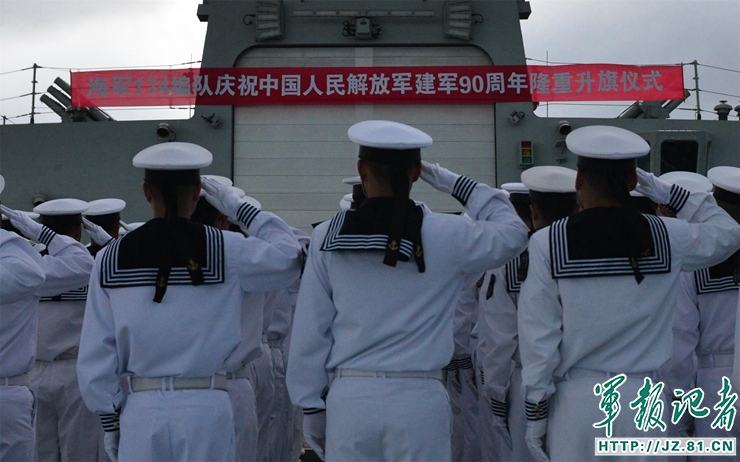中国海军舰艇编队举行八一升旗仪式庆祝建军90周年