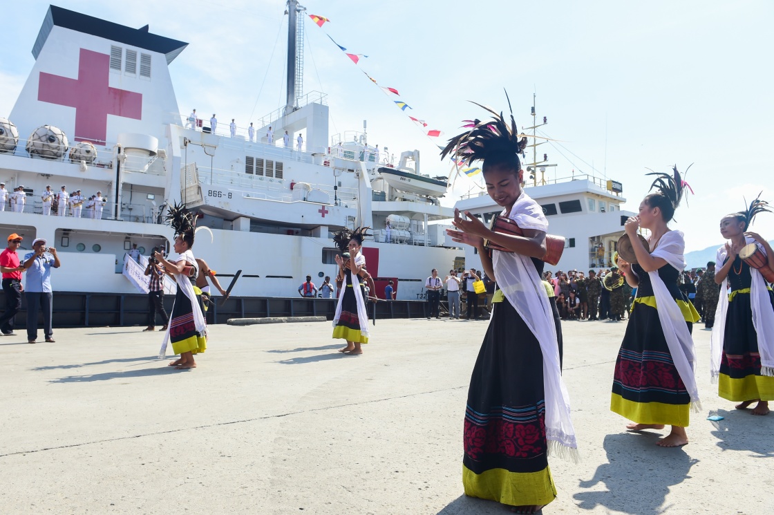 当天上午,和平方舟医院船在东帝汶海军舰艇引导下,缓缓驶入帝力港。东帝汶防务安全部长索莫丘,中国驻东帝汶大使刘洪洋、武官黄大民,以及中国驻东帝汶使馆工作人员、中资机构、华侨华人、当地民众代表等500余人到码头迎接。